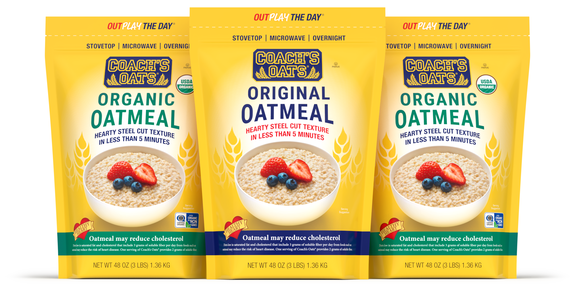 Coach’s Oats® deliver the best of both worlds — hearty, steel cut texture in less than 5 minutes.