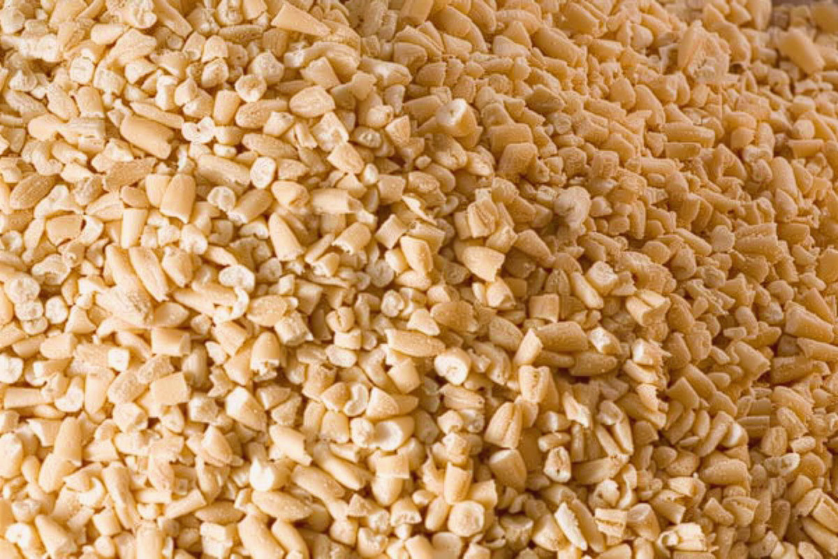 Steel Cut Oats are groats cut with rotating steel blades. During this process, each groat is cut into small pieces, resulting in oatmeal. Traditional steel cut oats take 30 to 45 minutes to cook on the stove top only. Steel cut oats are not microwavable and may take more than one day of soaking to prepare as overnight oats. Also, they cannot be used in baking.
